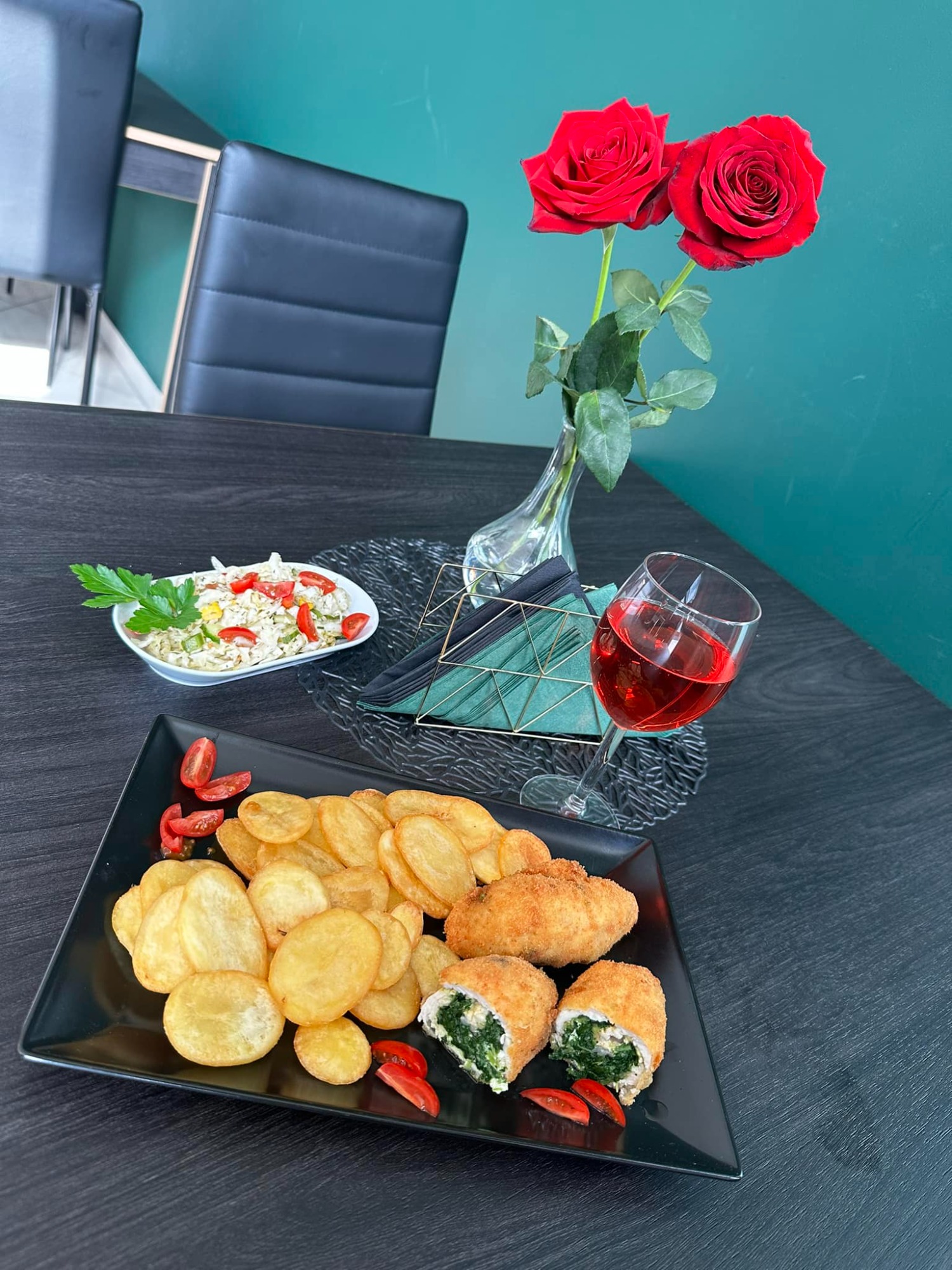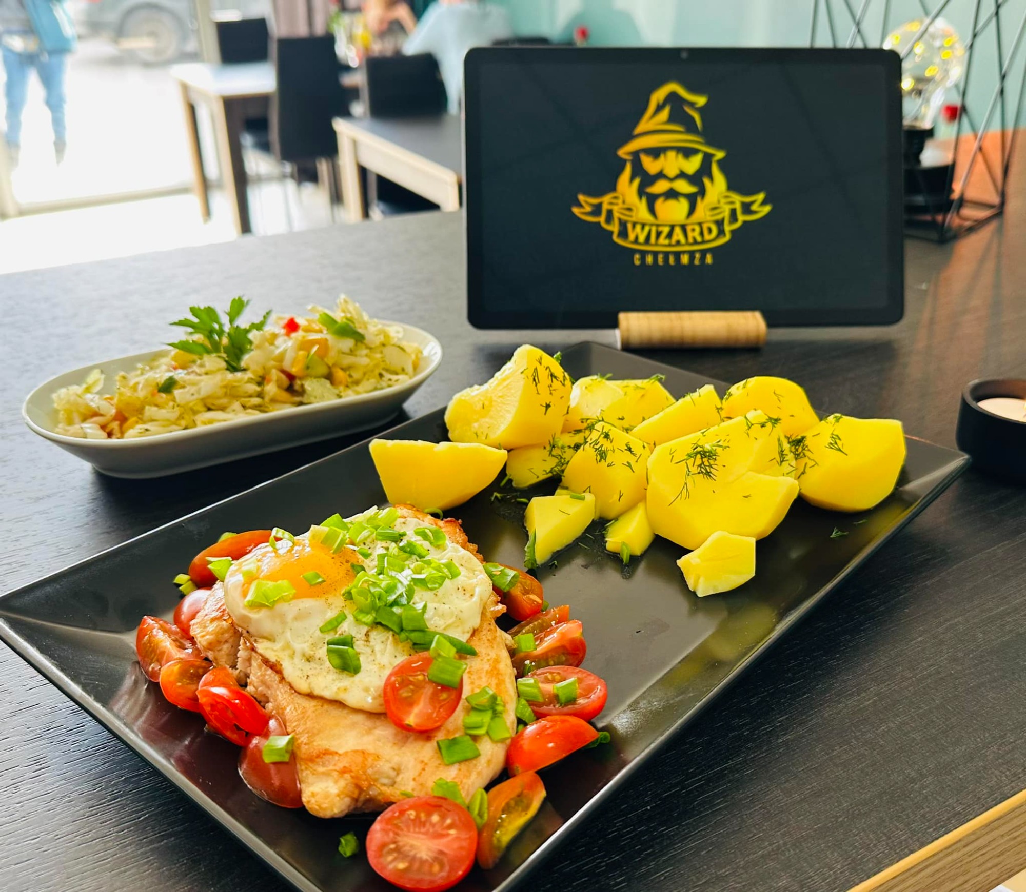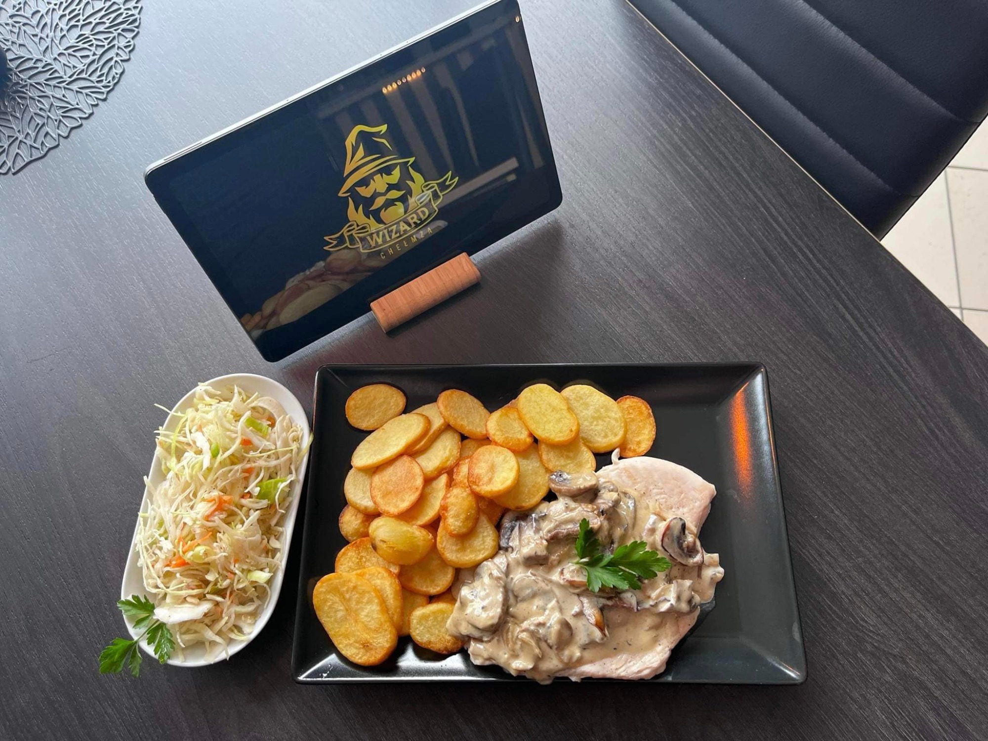 mięso do wyboru, frytki, surówka, sos do wyboru -